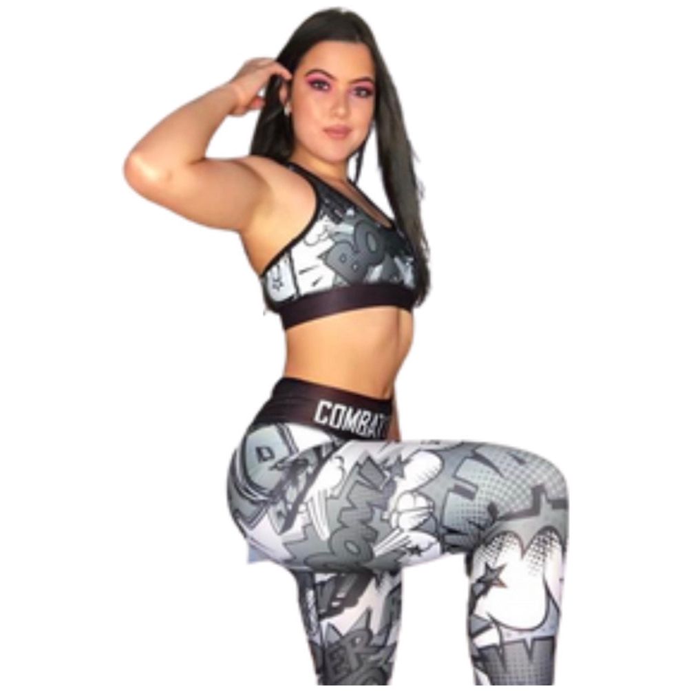 This fun print Combat Dollies Black and White Comic Sports Bra will keep your style chic with simple black and white comic large print.