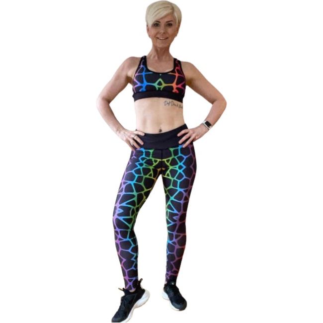 Combat Dollies Exclusive Giraffe Fitness Leggings in a multi-colour funky giraffe print , only at Step'n'Pump!
