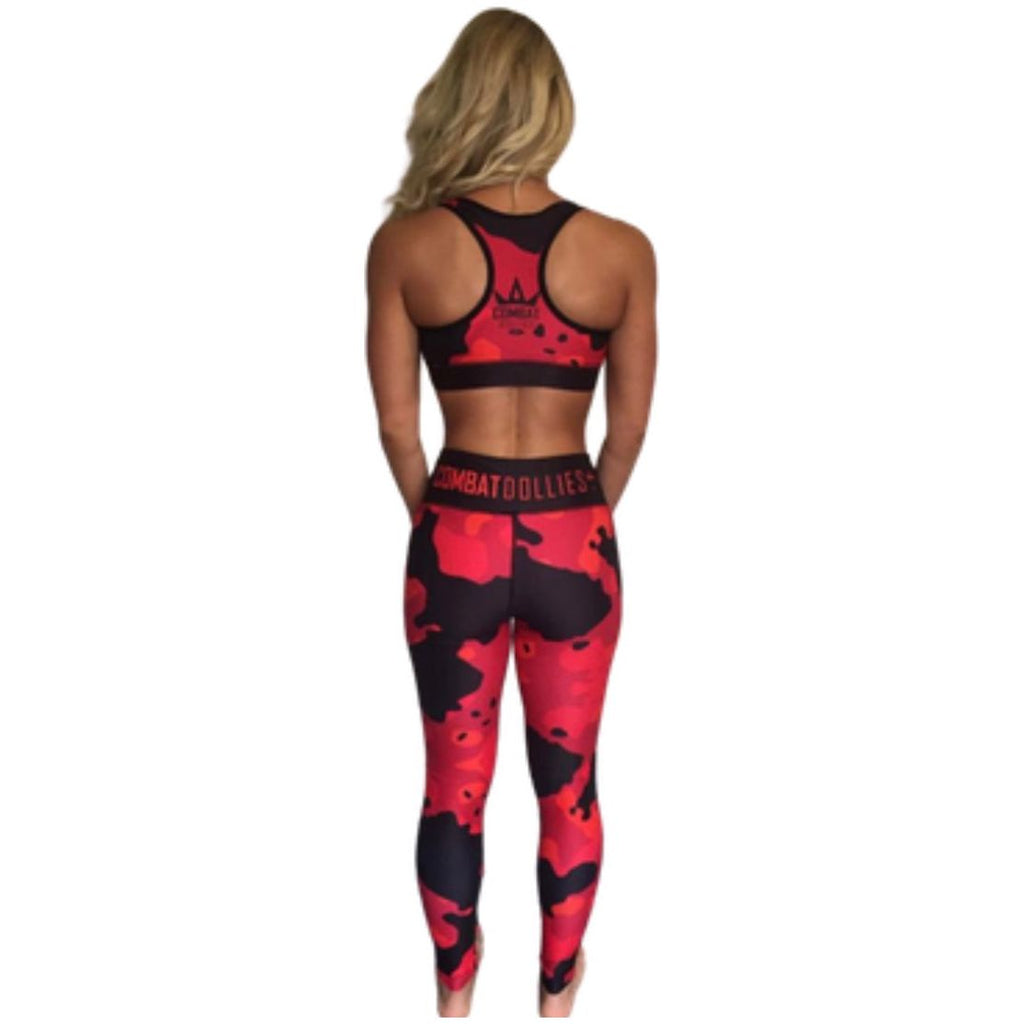 This Combat Dollies Full Red Camo option without the logo on the back also has matching leggings available.Made from strong polyamide and elastane with reinforced stitching and double layered for extra support. Helps keep you dry during your workout. This