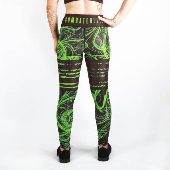 Stand out in the Combat Dollies Green Swirl Leggings. Matching Bra available.