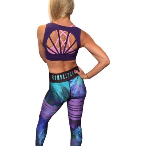 Combat Dollies Suzie Tribe Fitness Leggings are a loud mix of blues and purples abstract patterns. Matching Sports Bra also available, to complete the look. The material has sublimation printing that will not peel, crack and is completely squat proof!