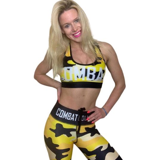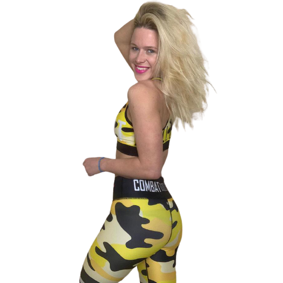 You will love these Combat Dollies Yellow Camo Stripe Compression Leggings, matching bra available to complete a cheerful look.The material has sublimation printing that will not peel, crack and is completely squat proof! Extremely comfortable and durable fabric with a double