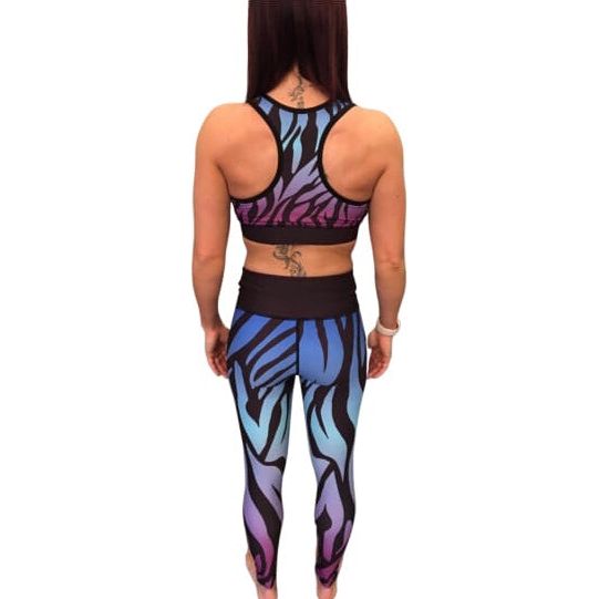 Combat Dollies Fitness Leggings in our exclusive bold Blue Zebra Print for those who want to be individual. Matching sports bra also available.