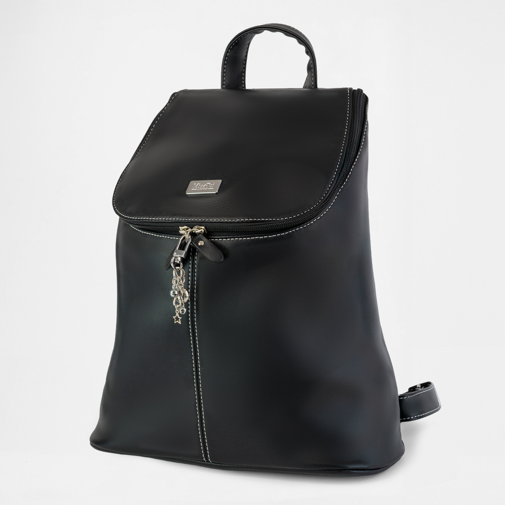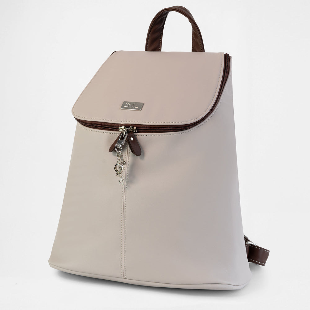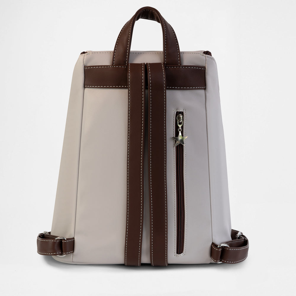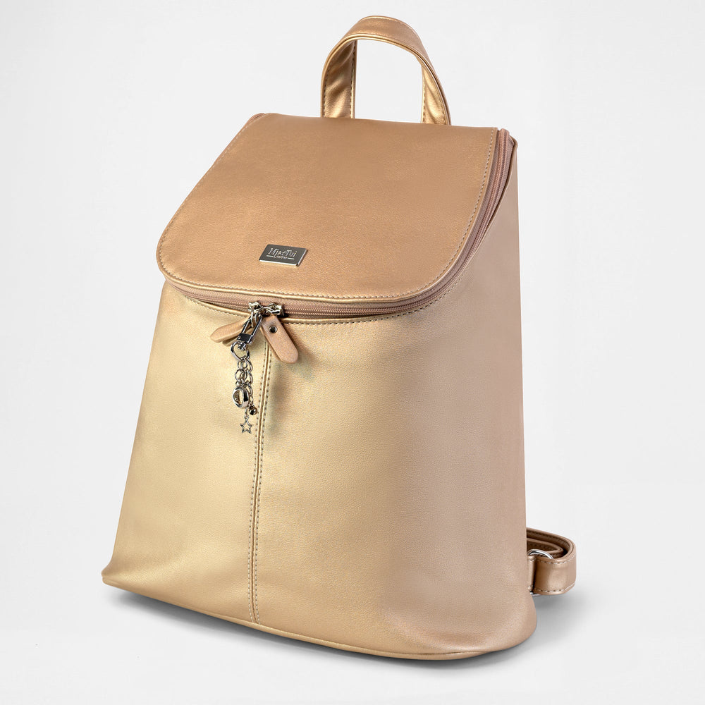 It has full zip closure for added security, and a large pocket on the back of the bag, which is accessible for you (not anyone else!) when the bag on your back, so great for your purse and phone.
