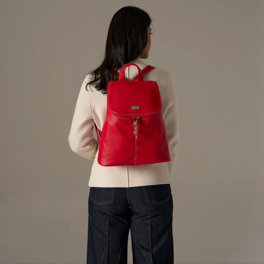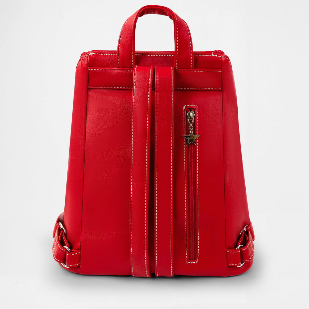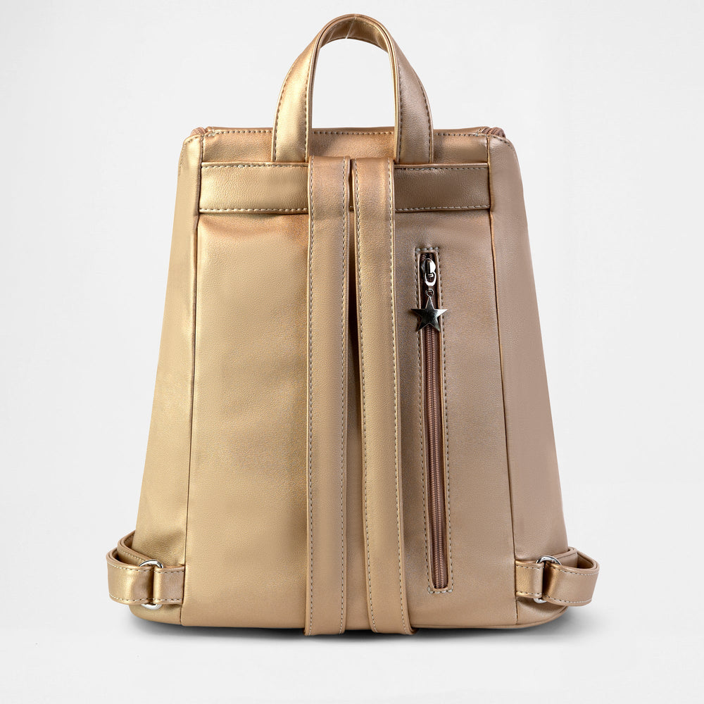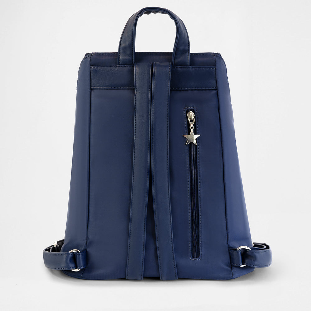 It has full zip closure for added security, and a large pocket on the back of the bag, which is accessible for you (not anyone else!) when the bag on your back, so great for your purse and phone.