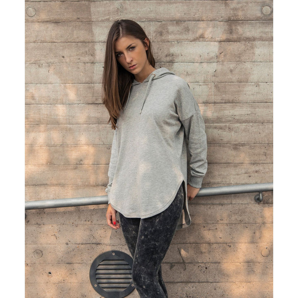 Step n Pump Essentials Loose Heather Grey Terry Hoodie is the perfect piece to have in your loungewear wardrobe. . Features:- . Fashionable shaped hem with open slits. . Wide cuffs on the sleeve. . Rip cuff at the hem. . Hood with single