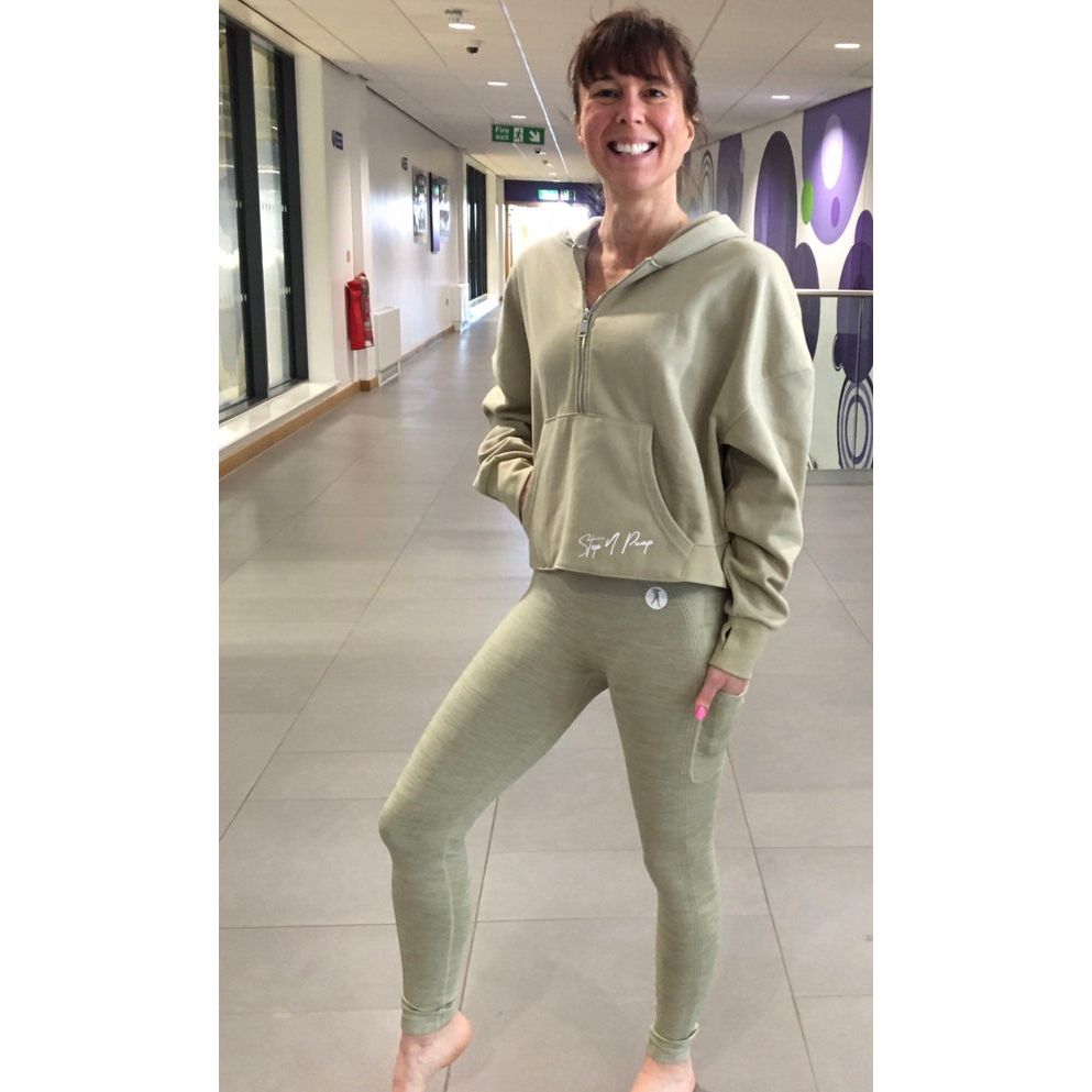 Step n Pump Essentials Sage Green HAlf Zip Hoodie Made from a soft, lightweight fleece and features a 1/2 zip with hood which will keep you feeling cosy and comfortable. It is easy to slip on and with its oversized