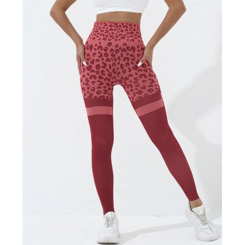 Step n Pump Exclusive Red Leopard High - Waisted Seamless Stripe Leggings With A Bold Colour Bloch Design make these leggings a stylish and versatile choice for any occasion.