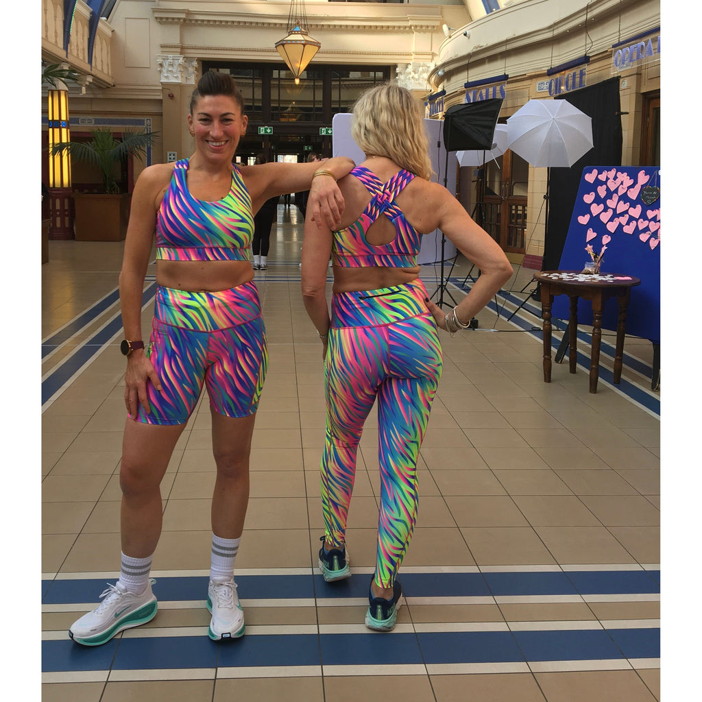 Features:- Vibrant neon Flame print Criss Cross Back Detail Supportive with deep band 4 Way stretch Technical wicking fabric Team up with matching shorts, skort, capri, leggings PRE - ORDER ...