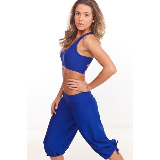 This fold down waist trouser with ties at the legs is our most poular harem and very comfortable to wear. The waistband can be worn folded or unfolded for an individual look.Suitable for yoga, pilates, zumba, clubbercise or for leisure.