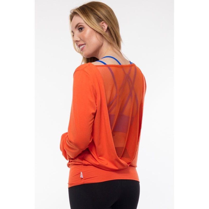 . Our beautiful long sleeve top is made in a soft luxurious feel Italian modal fabric with a matching net back which looks stunning.. You can layer it over a contrasting colour crop top or sports bra like our Sp307