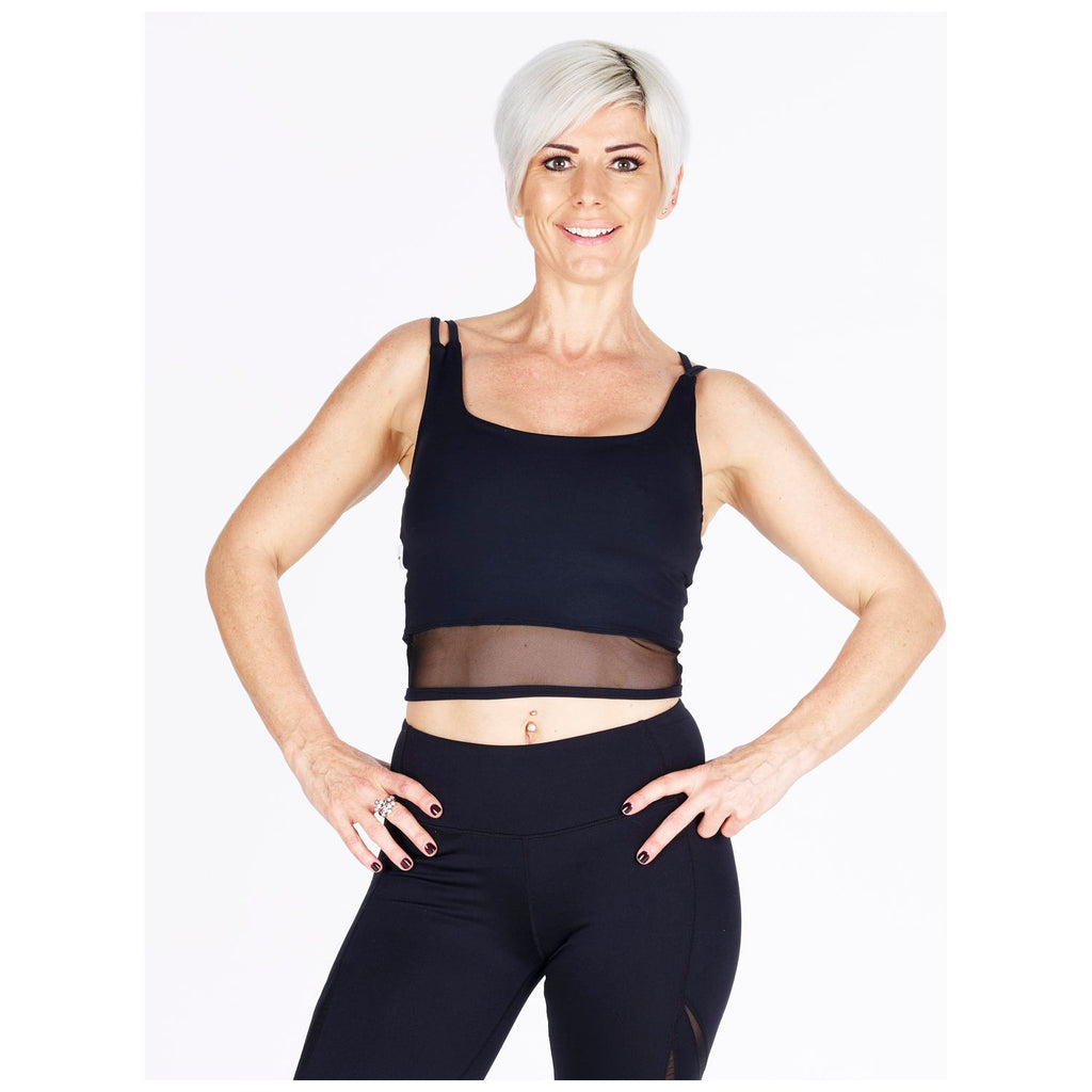 A versatile and pretty top which can be worn on its own or under layering tops. It features fine detailed straps at the back and has a net panel around the bottom.Made from a lovely, soft meryl fabric in a range