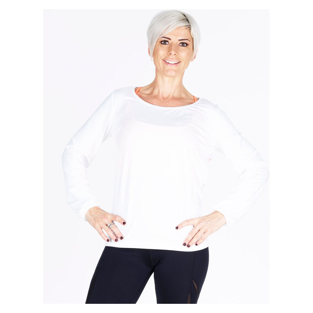 Beautiful long sleeved top with gathered cuff and slashed back detail to wear over a sports bra, crop top or cami for a pretty multi-layered look. Suitable for Dance, Gym, Yoga or Leisure.Made in luxurious Italian Modal technical fabric with a