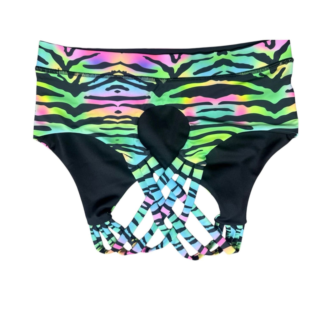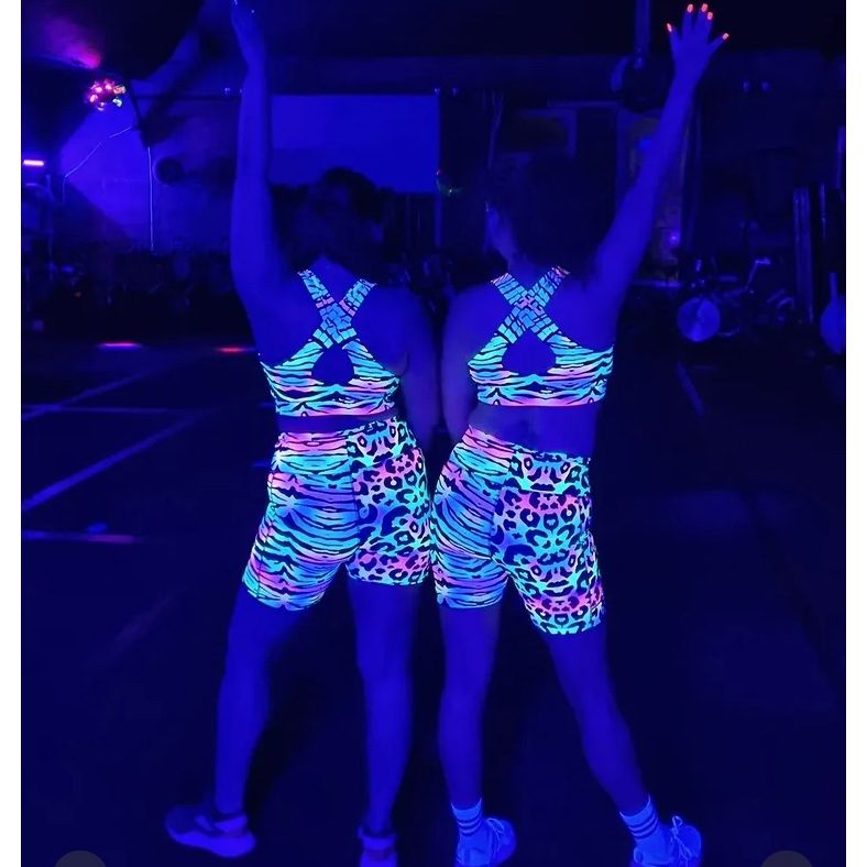 Step n Pump UV Reactive Pastel Tiger Print Criss Cross Back Crop Top