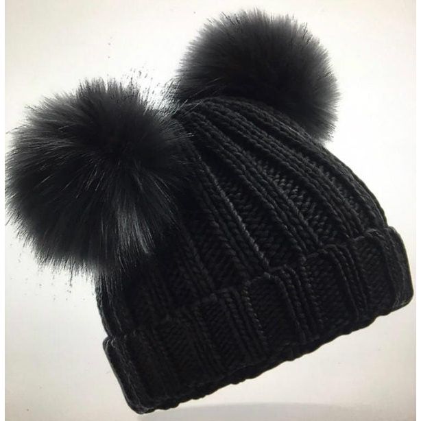 Step n Pump Essentials Adults Black Faux Fur Double Pop Pom Beanie