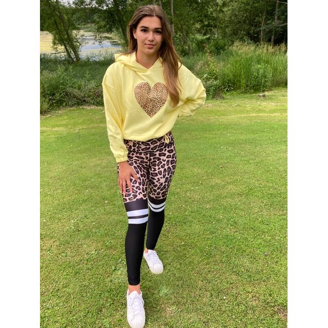 Our Stepnpump Essentials lemon Leopard Heart Hoodie is the ideal piece to have in your fitness or leisure wardrobe and looks perfect with your fitness leggings or worn casually with a pair of jeans.