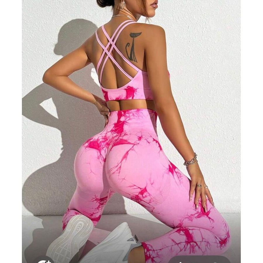Our exclusive leggings are very comfortable and feature:- . A ruched bottom which enhances your shape. . They are made in a seamless pink -black tie dye fabric. . High...