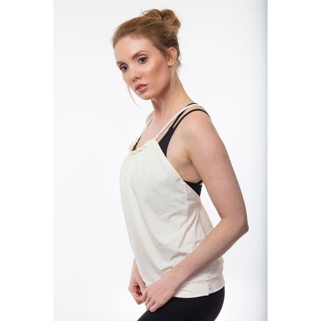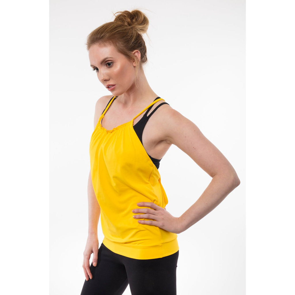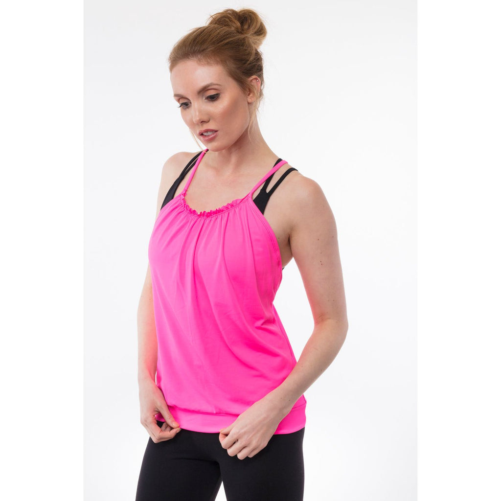 This gorgeous layering top has a lovely frill, ruched front and thin straps that cross over at the back.Wear with a contrasting crop top or sports bra underneath. It can be made in plain or printed colours and features a