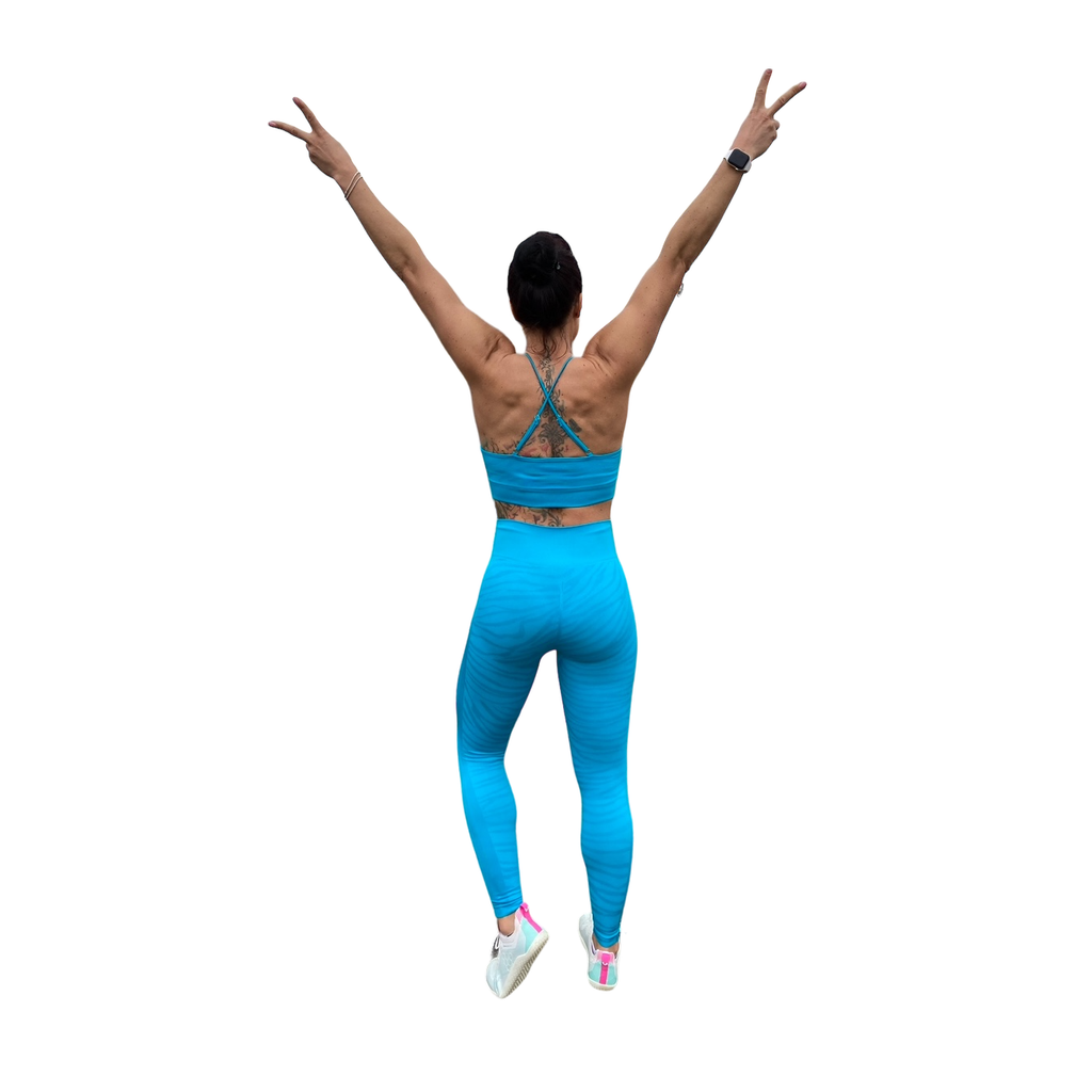 Our exclusive aqua blue zebra set is made in a stunning zebra print seamless fabric.