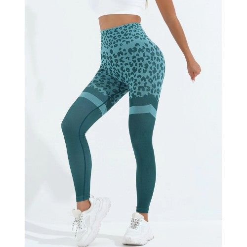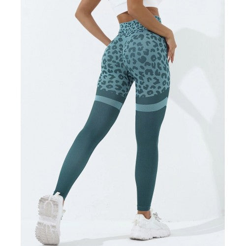 Step n Pump Exclusive Teal Leopard Seamless Stripe Leggings